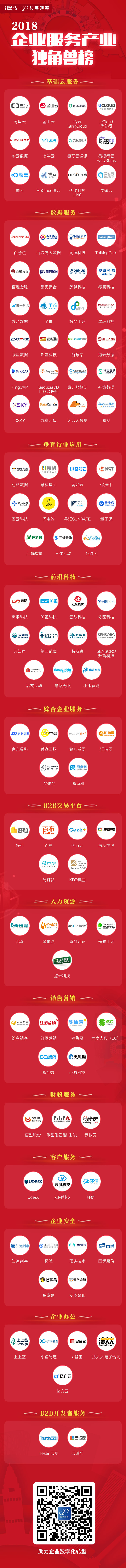 企業數字化轉型也進入加速階段。企業服務產業迎來發展的黃金期,圍繞著大數據、云計算、人工智能等細分領域的創新層出不窮。而獨角獸公司是企業服務大產業的中堅力量,它們在服務體驗、效率提升和降低成本等方面,扮演著至關重要的角色,它們是中國企業服務產業的未來。