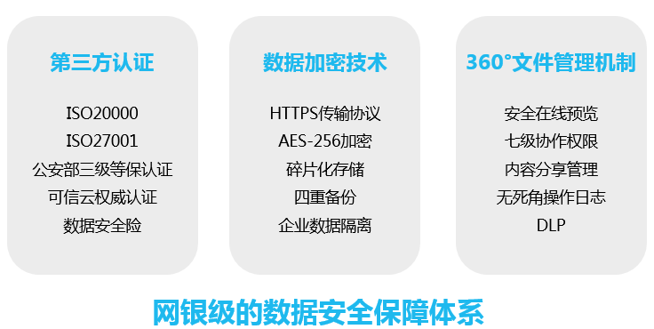 億方云采用傳輸存儲全鏈路加密,文件上傳下載使用HTTPS傳輸協議,傳輸過程中對文件本身進行了二次AES CTR 256算法流式分塊加密,為用戶數據做了多達四份加密保存,且數據分布在不同的存儲平臺,杜絕因平臺原因造成的用戶數據丟失。