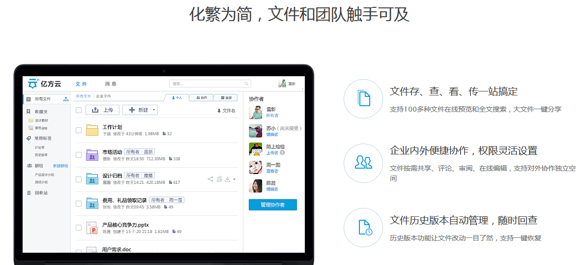 1.、無論是手機、Pad、筆記本、還是電腦,都可以登陸億方云,隨時隨地調(diào)用所需要的文件完成協(xié)作。