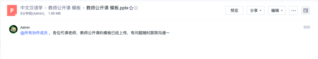 老師們可以直接基于文件通過“評(píng)論”進(jìn)行溝通討論,交流記錄會(huì)被平臺(tái)永久留存,方便隨時(shí)進(jìn)行回溯。
