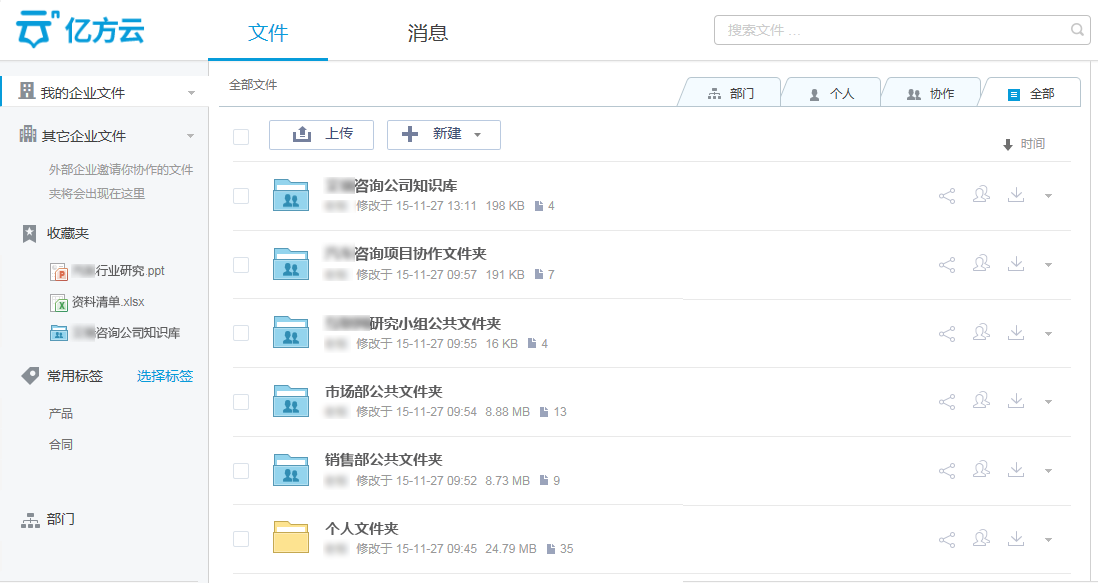 億方云是企業一站式文件管理與協作云平臺,具有一套完整的基于文件的共享和協同辦公機制,幫助咨詢服務客戶實現項目效率提升。