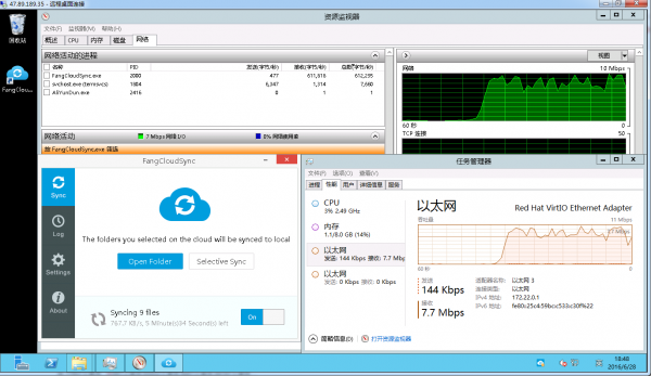 以億方云為例,經過精確測速,在使用全球加速功能前,境外平均傳輸速度約為7.7Mbps,每秒鐘文件平均傳輸速度約為700KB。試用全球加速功能后,境外平均傳輸速度約14Mbps,一秒鐘傳輸文件可平穩達到1.2MB(以上數據基于測試環境:Windwos2012標準版操作系統,美國東部Nortel Networks網絡,上下行20Mbps帶寬情況實測)。