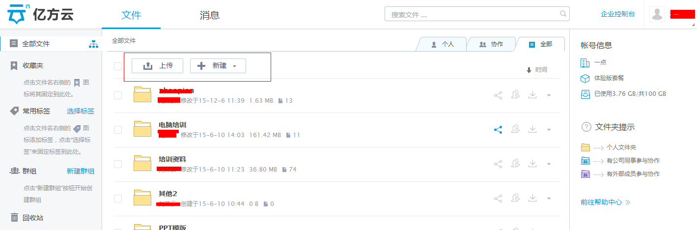 怎么備份文件夾?在進入億方云協作平臺后即可實現備份。新建文件夾,上傳文件,保存文件夾,即完成了文件夾備份的操作,簡單方便快捷 。